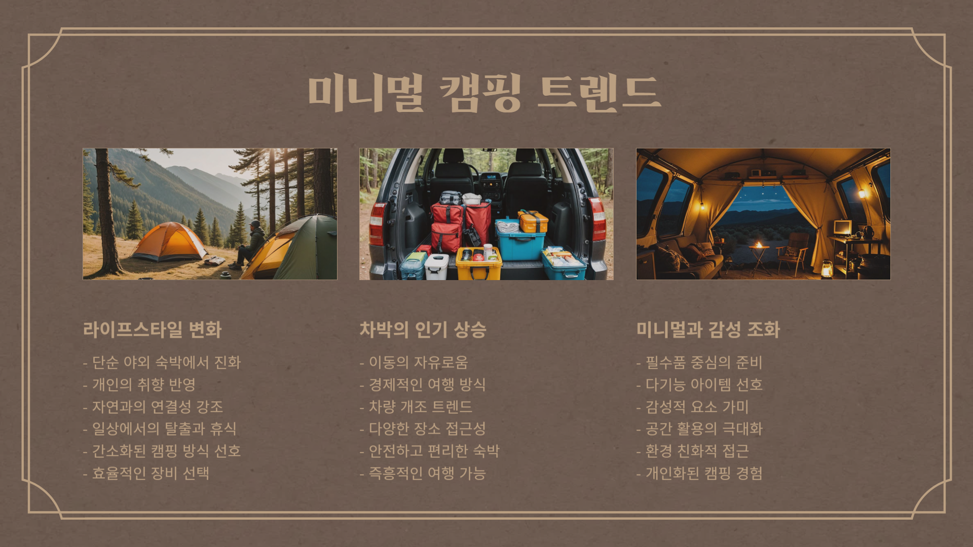 이번 글에서는 2025년 차박 미니멀 캠핑 용품 트렌드를 한눈에 정리해드립니다.