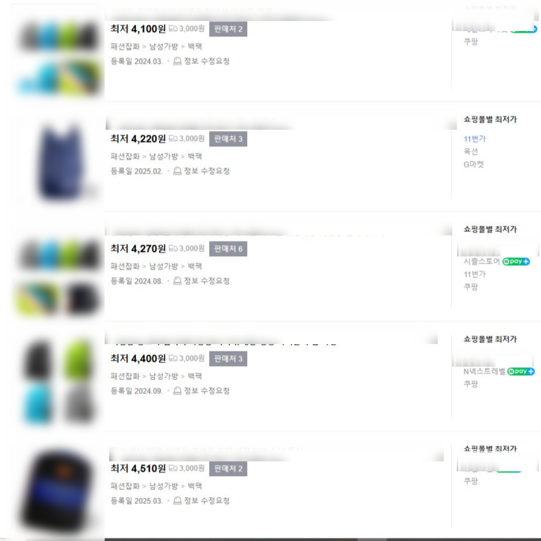 | 여행용 백팩 | ₩ 5,000~₩30,000 | 수납력 + 착용감 중시 |