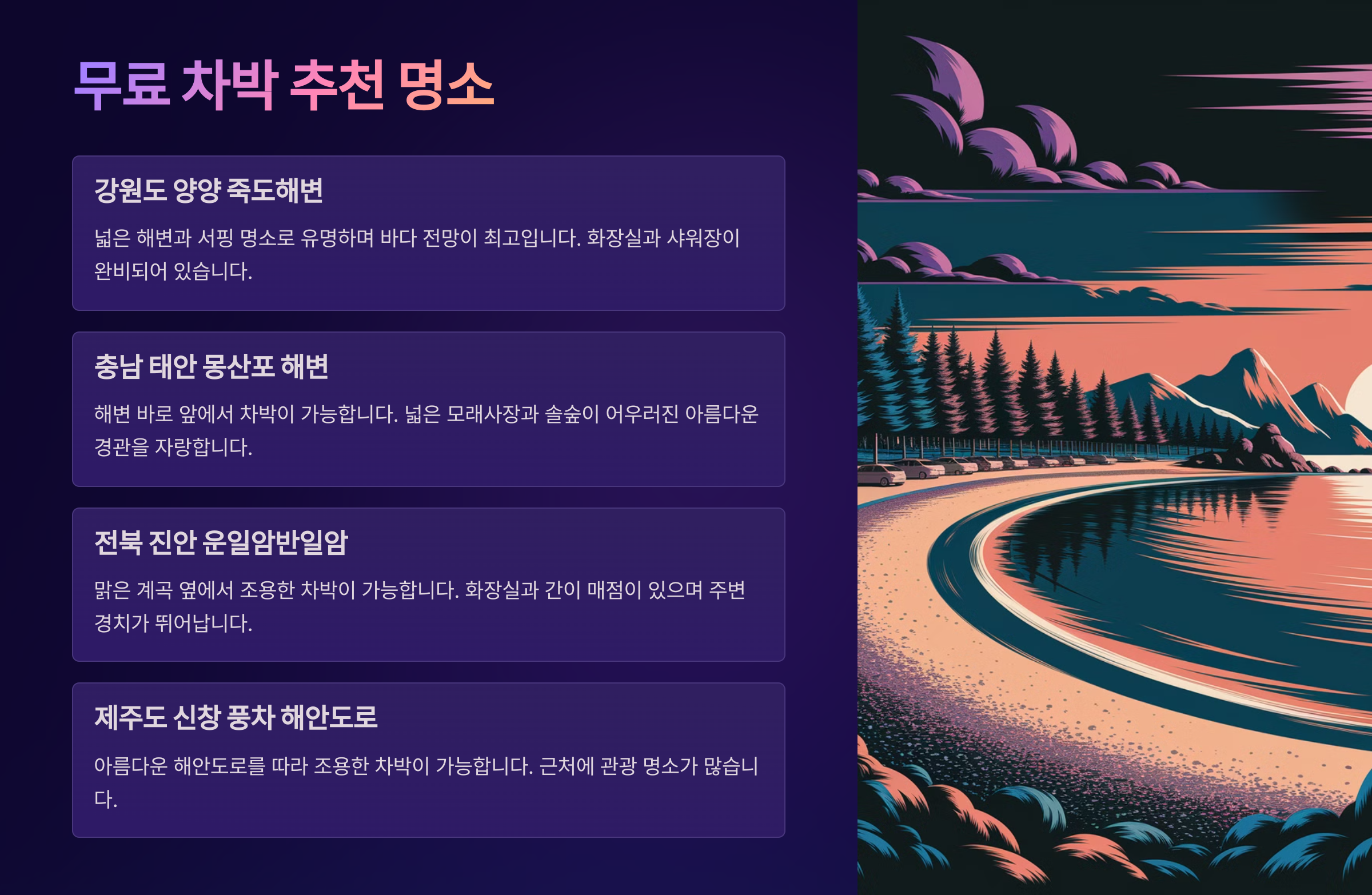 3. 무료로 차박하기 좋은 국내 명소 추천