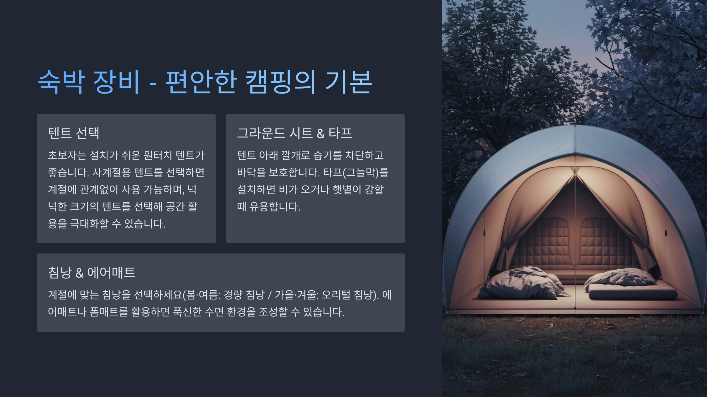 🏕 1) 숙박 장비 (텐트 & 침구류)