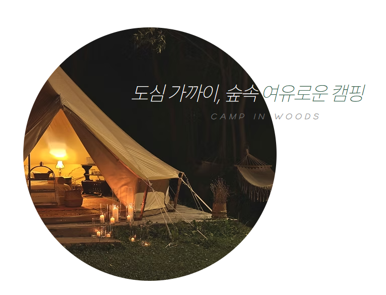 간단한 텐트 하나로 숲속 쉼표를 찍기에 아주 적합하죠.