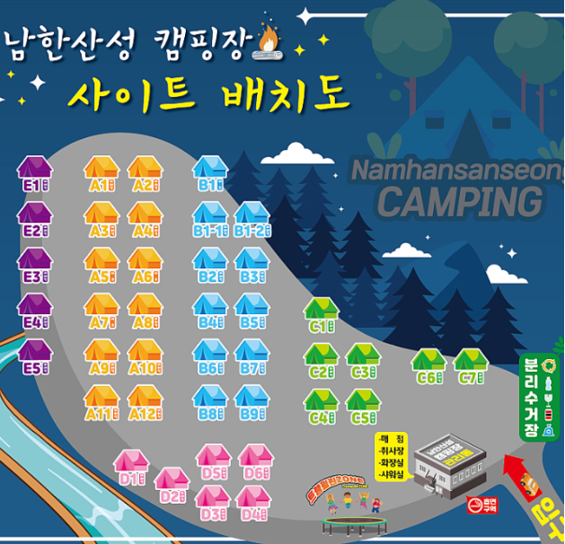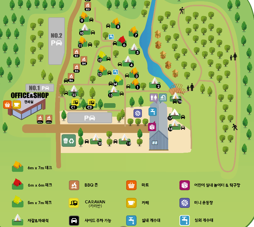 🌿특징: 울창한 숲속, 그늘 많음, 사이트 간격 넓음, 편의시설 완비, 예약 필수