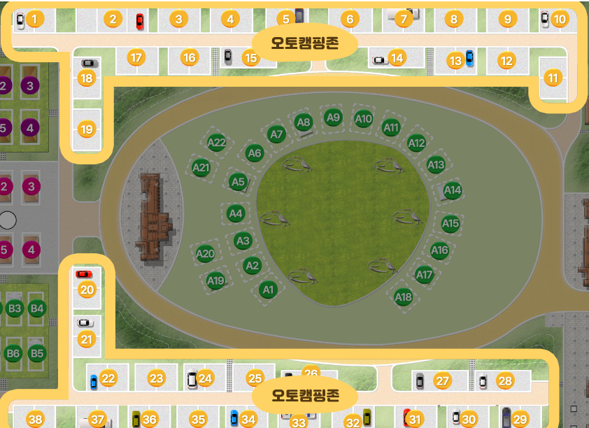 잔디밭이 잘 정비되어 있어 차량에서 바로 캠핑을 시작할 수 있는 차박 명소로 유명합니다.