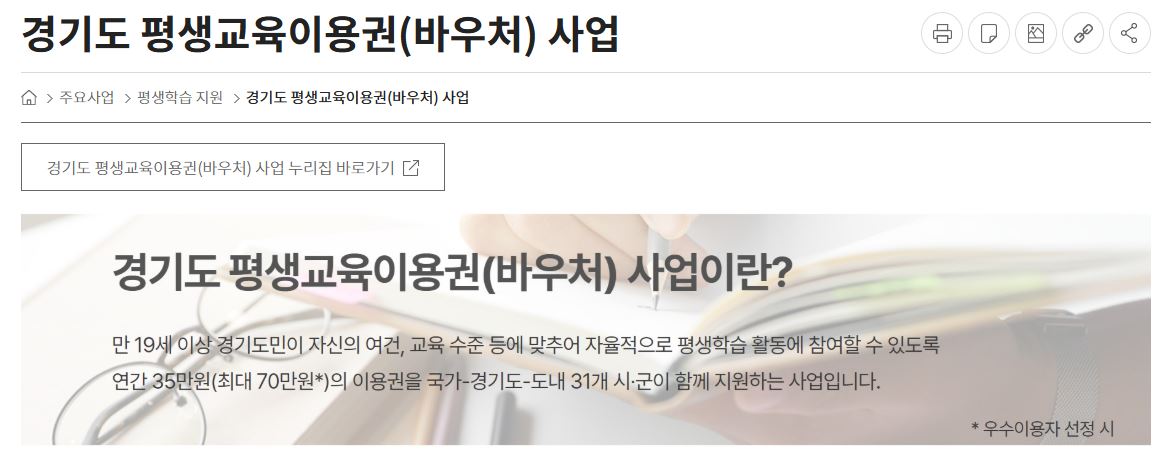 경기도 평생교육 이용권은 경기도민이 학습 기회를 균등하게 누릴 수 있도록 교육비를 지원해주는 경기도형 바우처 제도입니다.